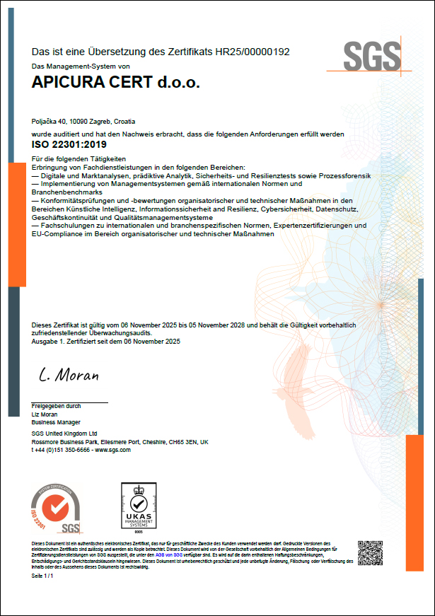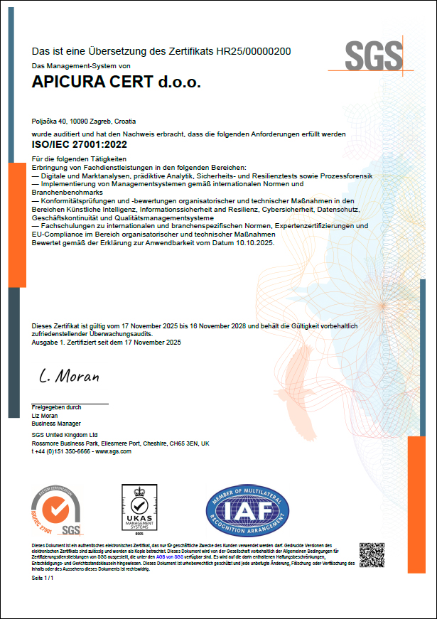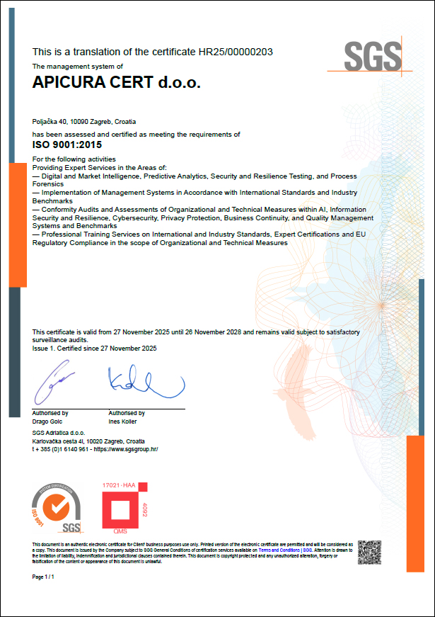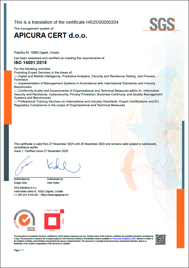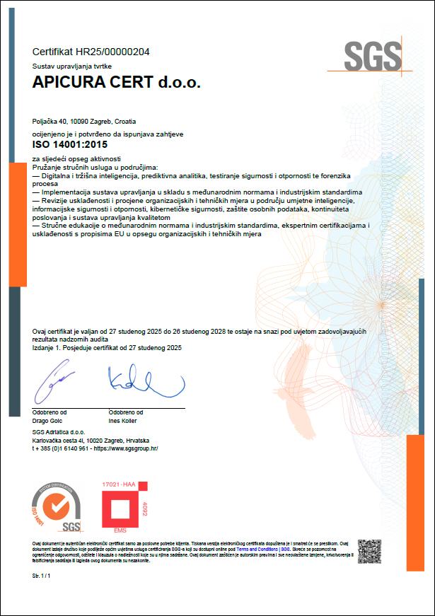 APICURA CERT d.o.o. društvo s ograničenom odgovornošću za trgovinu i usluge.